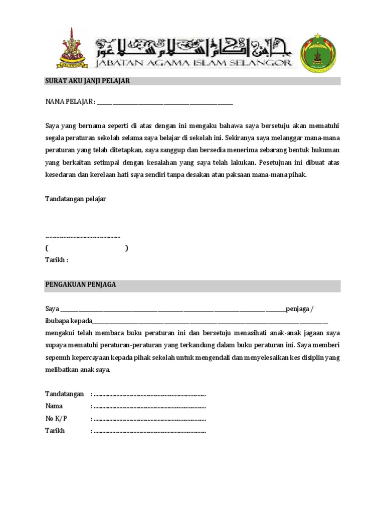 Bahawasanya saya dengan ini berikrar dan berjanji sesungguh hati akan - 1. SURAT AKU JANJI PERJANJIAN JAMINAN BERKELAKUAN BAIK Bahawa saya MOHAMAD ILHAM BIN ABDUL AZIZ mengaku untuk berkelakuan baik dan mematuhi semua peraturan yang ditetapkan oleh pihak sekolah termasuklah. User Last modified by.