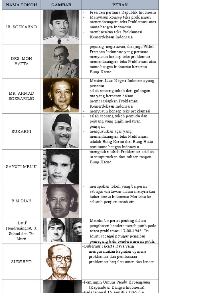Soekarno menuliskan konsep teks proklamasi pada secarik kertas sedangkan Mohammad Hatta dan Ahmad. 6 Tokoh Proklamasi Kemerdekaan Indonesia. Tentunya kalian sudah tak asing lagi dengan tokoh proklamasi ini.